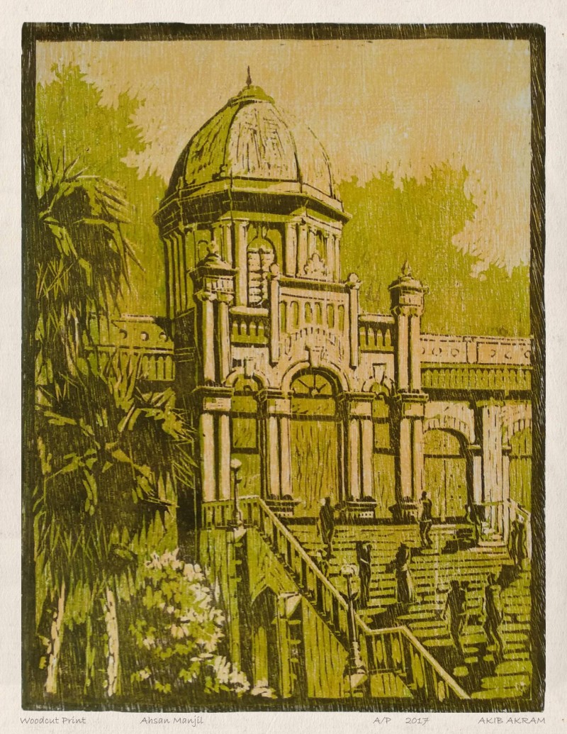 Ahsan Manjil Dhaka Woodcut 2017 March 28th, 2025 03:57 AM Media: Woodcut PrintSize: 12x16 inYear: 2017