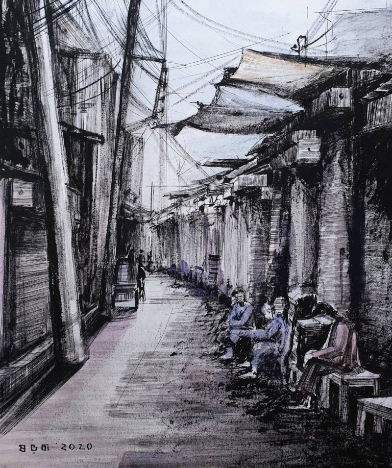 Banglabazar Book Road, Dhaka March 28th, 2025 05:18 PM 2020_Ink on Paper_17x23_in_Banglabazar Book Road, Dhaka