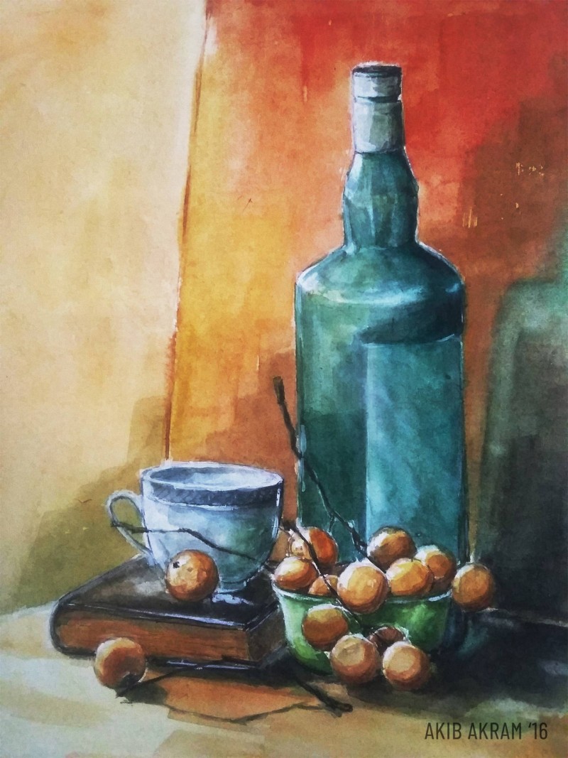 Food, Book and Bottle Watercolor 2016 March 28th, 2025 03:12 AM Media: Watercolor on PaperDimension: 12x16 inYear: 2016